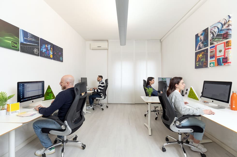 Tre grafici con diverse expertise, due più focalizzati sulla UX/UI e uno sulla grafica tradizionale e i social media.